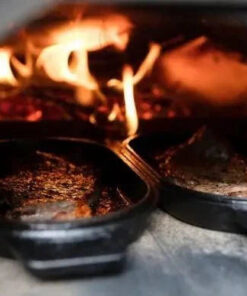 A perfect complement to the Ooni Wood Fired Oven. enhancing its versatility for cooking a variety of dishes. Whether you’re grilling meat. seafood. vegetables. or more. this pan brings out the best flavors in your creations. With its removable handle. you can easily retrieve sizzling hot meals straight from the oven. while the wood base serves as a convenient trivet for serving.