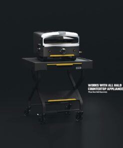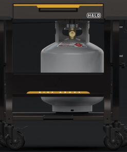 The HALO Countertop Cart’s unique features perfectly pair with any Halo countertop product. Free up clutter and keep your space clean with a hidden drop-down drawer. strategically placed drainage holes. and a magnetic attachment to access cooking utensils. Safely store your 20lb propane tank with a lock-in-place setting at the cart’s rear base. Easily collapsible. the simple fold up and roll detail makes it perfect for the patio or on the go.