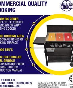 Griller’s Choice understands the demanding needs of both professional cooks and outdoor enthusiasts and has created this flat top griddle grill to meet those demanding needs to create amazing meals.