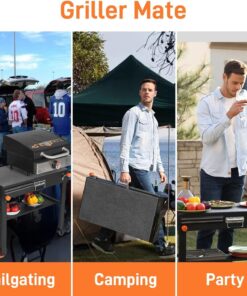 - Universal Portable Grill Cart/Table/Stand – It a great partner with your Blackstone Griddle. Grill. Stove. Smoker and others Portable outdoor cooking equirnments. It fits Blackstone 17/22 Griddle. Ninja grill. ooni pizza ovens. Table Top Grill. Camping Stove Propane and other sizes up to W31 X 17 (Front to Back).