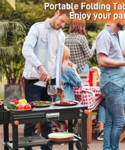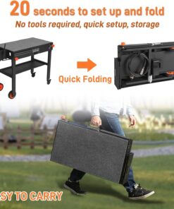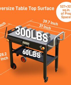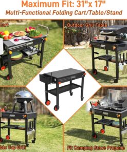 Outdoor Portable Grill Table Stand – Folding Prep Stand for 17 or 22 Blackstone Griddle. Large Space Blackstone Table with Wheels. Pizza Oven Cart for Ninja. Patio Grilling Backyard BBQ Grill Cart.