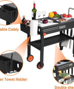 - OUTDOOR CARTS WITH WHEELS – The outdoor pizza oven stand & grill cart comes with wheels and can swivel 360 degrees for easy movement. once you find the perfect spot for your outdoor grill station. just depress the locking button on the wheels to hold it in place while you relax. applied for appearance patent.