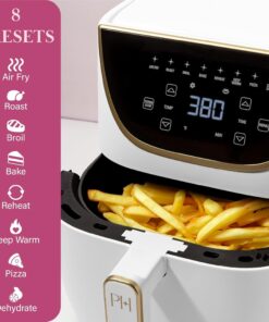 Experience the glamorous Paris Hilton Air Fryer. a stylish alternative to waiting for your oven to preheat. This chic appliance ensures rapid and even cooking. circulating hot air for quick. crispy. and golden finishes. Powered with a wide temperature range. the fan adjusts speeds based on your chosen cooking function. allowing you to effortlessly prepare favorites like French fries with minimal to no oil in its basket. The digital touchscreen display allows you to select from 8 preset functions: Air Fry. Roast. Broil. Bake. Reheat. Keep Warm. Pizza. Dehydrate. The air fryer also features an adjustable time control and temperature range from 90°F to 400°F allowing you to customize a cooking program to suit any recipe. The Paris Hilton Air Fryer will become your go-to for any meal or snack. effortlessly creating crisp delights and adding a touch of sophistication to your countertop!