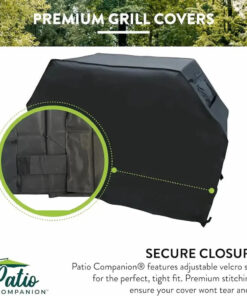 Protect your grill with the Patio Companion Premium Large Universal Grill Cover. Made from durable. UV blocking material. this cover offers all-weather protection against wind. rain. and sun damage.