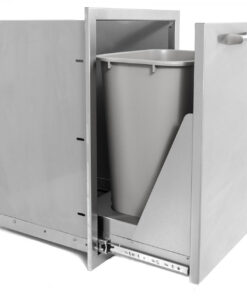 This PCM 20-Inch roll-out stainless steel double trash & recycling bin is constructed with a 20 gauge. 304 grade stainless steel frame and number 4 brushed finish. Heavy duty commercial grade ball bearing tray glides smoothly on full length tracks providing easy access. The unit is flush mounted for a streamlined appearance and two 42-quart trash cans are included.