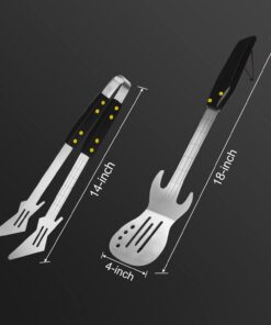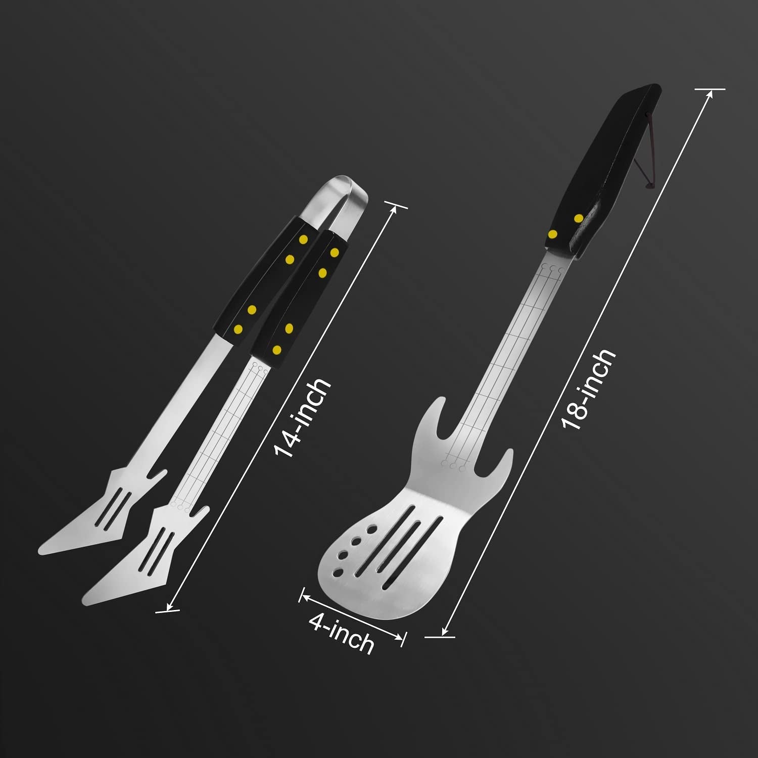 PEPKICN Rock Guitar Style Heavy Duty Stainless Steel 2-Piece Barbecue Tool Set – Spatula & Tongs with Wooden Handle