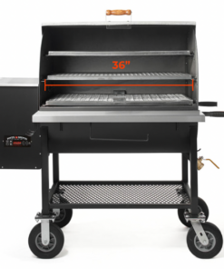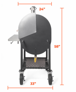 The carbon steel cooking chamber is made of 7 and 10 gauge carbon steel. This grill comes standard with our signature 304 stainless steel lid and work shelf.
