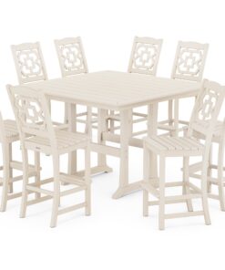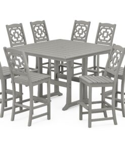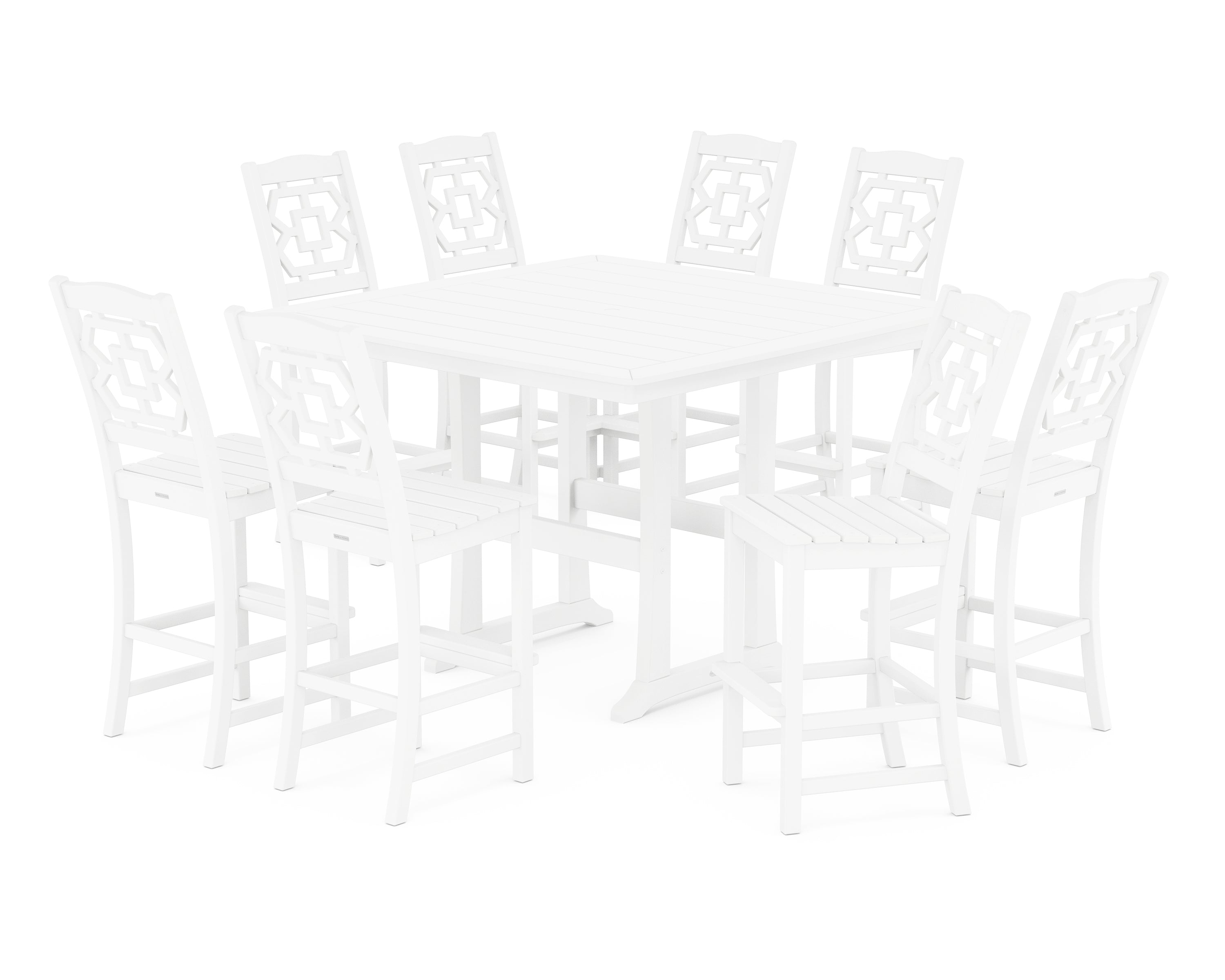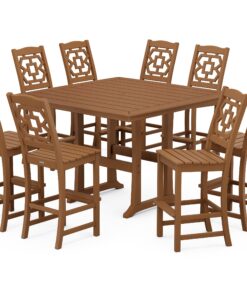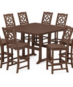 Polywood: Chinoiserie 9-Piece Square Side Chair Bar Set with Trestle Legs