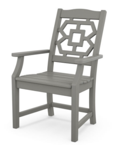 Effortless entertaining starts with the Martha Stewart by POLYWOOD Chinoiserie Dining Arm Chair. a striking design that keeps guests comfortable through the last course. The intricate latticework is the star. while linger-worthy details like a reclined back. contoured seat. and armrests play supporting roles. Designed to last a lifetime. this all-weather. heirloom-worthy dining furniture is somewhere recipes. traditions. and laughter are shared.