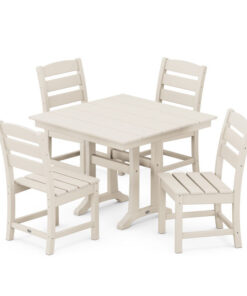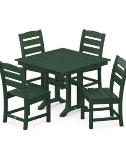 The Lakeside 5-Piece Farmhouse Trestle Side Chair Dining Set can make your next outdoor gathering extra special with its great looks and exceptional comfort. The dining chairs from the Lakeside Collection have a charming esthetic with their clean lines and gently curved backrests. and they pair beautifully with our durable Farmhouse table that features a full-slatted tabletop and a robust trestle-style base. This set is constructed from genuine POLYWOOD lumber. a durable material that’s easy to clean and never needs to be painted. stained. or waterproofed so you can look forward to more time relaxing on your new dining set and less time maintaining it.