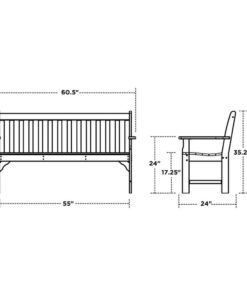 Upgrade your outdoor seating space with the Vineyard 60 inch Bench. Built to withstand a range of climates. from hot sun to snowy winters and strong coastal winds. this bench features a comfortably contoured seat for optimal comfort. Crafted from durable POLYWOOD lumber. a proprietary material made from landfill-bound and ocean-bound plastics. this bench is not only stylish but also environmentally friendly. Proudly made in the USA. it comes with a 20-year residential warranty and a 3-year commercial warranty. ensuring its longevity and performance. The Mahogany finish adds a touch of sophistication to any outdoor setting. making it the perfect addition to your porch. patio. or veranda.
