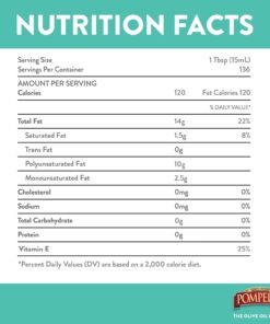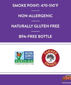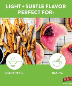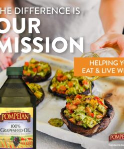 Pompeian 100% Grapeseed Oil. Light and Subtle Flavor. Perfect for High-Heat Cooking. Deep Frying and Baking. 68 FL. OZ.