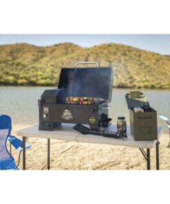 The Pit Boss Portable Battery Powered Grill is exactly the grill every wanderer needs. Unplug and bring bold. wood-fired flavor anywhere with our first ever cordless battery powered wood pellet grill. The PB150PPB features Pit Boss’ innovative battery technology for the ultimate experience in portable pellet grilling. Up to 15 hours of run time on a single battery and the ability to plug into nearby power when available. means you won’t be left hungry while traveling or even staying in your own backyard. With 256 square inches of cooking area packed into a less than 60 lb. package. you can cook on the go with ease without sacrificing the ability to cook for a crowd. Utilize the Pit Boss standard 8-in-1 cooking versatility with a temperature range of 180° to 500°F. or slide the adjustable Flame Broilerâ„¢ for direct flame access up to 1000°F.