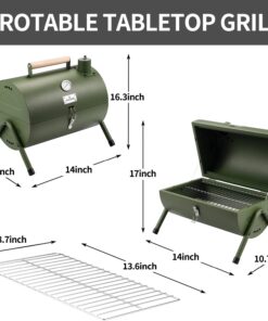Portable Charcoal Grill. Tabletop Outdoor Barbecue Smoker. Small BBQ Grill for Outdoor Cooking Backyard Camping Picnics Beach by DNKMOR GREEN