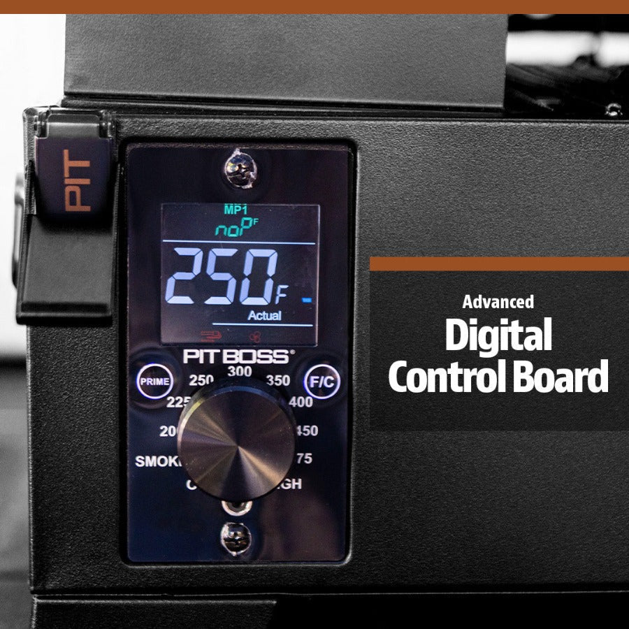 Its lightweight design and lock-tight latches make it easy to take wood pellet grilling on the road or enjoy in your own backyard. Featuring 256 square inches of cooking space and a 7-pound hopper capacity. take the PB150NX traveling. camping. or tailgating for delicious wood-fired flavor wherever you roam. The Pit Stop’s digital control board allows you to reach indirect cooking temperatures from 180° to 500°F. Or. use the Flame Broilerâ„¢ Lever for direct flame searing.