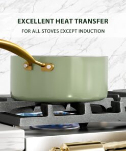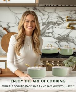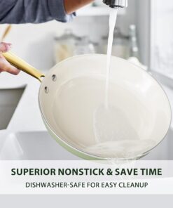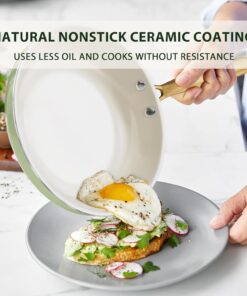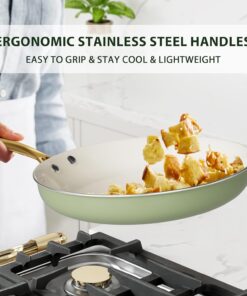 - Naturally Nonstick: No more sticky or difficult-to-clean problems. The Ceramic Cookware Set require less oil or butter for cooking and minimal scrubbing for a spotlessly clean. giving you a healthy and easy at-home culinary experience.
