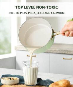 - Nonstick Ceramic Coated Cookware: Ceramic pots and pans set nonstick are free of PTFE. PFOA. PFAS. lead. cadmium and other toxic materials. 100% safe for you. your family. and the environment. Cooking with VONIKI white and gold non toxic cookware set. it’s a lifestyle investment for your kitchen. your body and the earth.