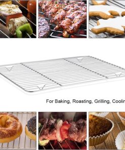 - 【HEAVY DUTY】Our baking rack come with thick rods for the solid stainless steel construction. Enough sturdy to hold heavy food. Ensure warp resistant. Each of jointed wires are finished by the seamless welding. No worries about falling off. Durable use for years