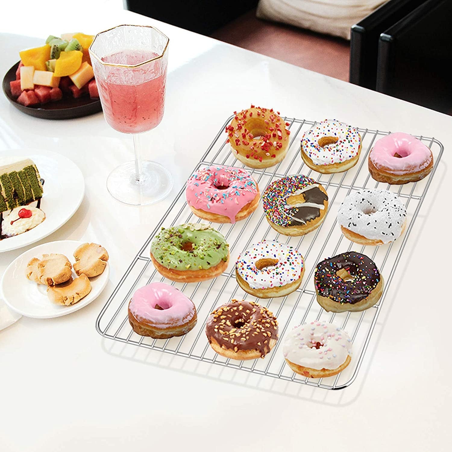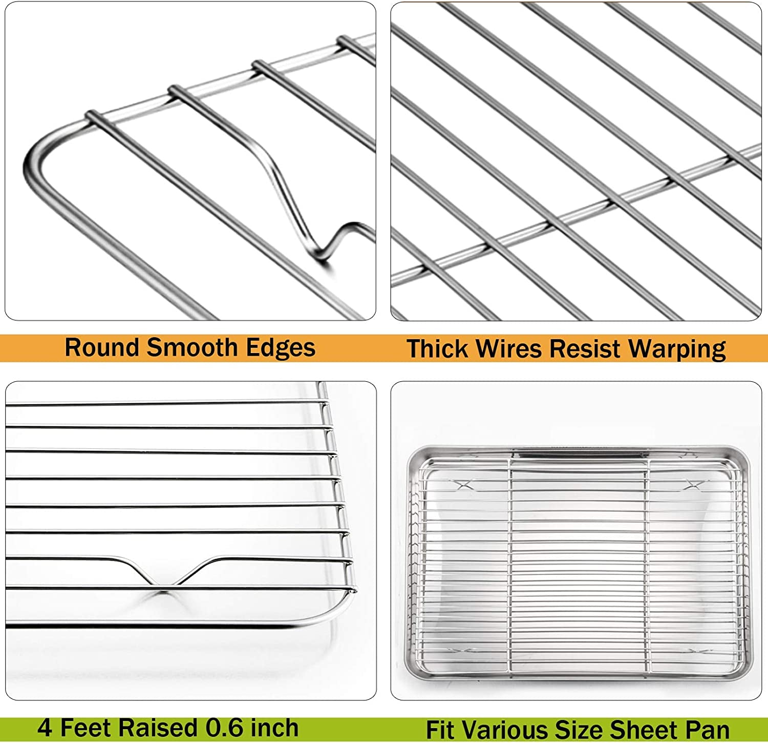 - 【BAKE EVENLY】Roasting rack raised 0.6-inch height. Allowing air to circulate on all sides of the food. Baking evenly for cooking quickly and saving time on repeat roasting. Cooling evenly for uniformly and quickly cool the cookies