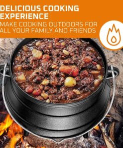 - Durable and Versatile: Built with cast iron. this cast iron dutch oven retains heat evenly and locks in moisture; ideal for simmering. braising. and slow-cooking at the campsite