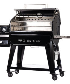 The Pit Boss® Pro Series Elite 1600 Wood Pellet Grill also includes deluxe features such as a 32-pound hopper capacity with a viewing window and an easy pellet clean out. stainless steel cooking grates for perfect sear marks. a folding front shelf. a solid bottom shelf and solid side shelf with built-in tool rack and the Pit Boss® 5-year warranty.Â