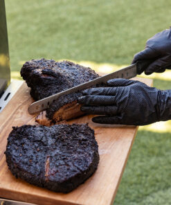 Slice your barbecue creations like a pro with the Pit Boss Pro Series Knife Set. This stainless-steel knife set is everything you need to prep your meat for the grill and slice to serve afterward. The brisket knife is designed with a straight. uniform edge to cleanly slice up meat. while the narrow and lightweight trimming knife has the flexibility to easily trim off unwanted fat and gristle.
