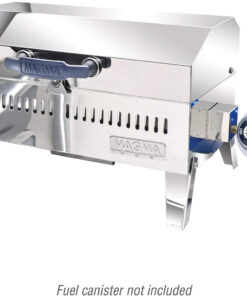 Designed for today’s boater who doesn’t want to substitute quality for cost. The cabo is made entirely of 100% 18-9 mirror polished marine grade stainless steel. Manufactured with the same quality you’ve come to expect from all Magma products. this gas grill’s features include a 9 x 18 (162 sq. In.) grilling surface. an oversized balanced lockable lid with draw tight latch. durable heat resistant all-weather handle with air cooled supports. fold-away table top legs. locking Grease tray with access from either side of the grill. and a convenient snap-out radiant plate Assembly for even heat distribution. The swiveling control valve/regulator. designed to use 1lb. Disposable propane fuel canisters. allows for quick. safe fuel canister exchanges or easily Adapt to existing low pressure propane (LPG) or natural gas (CNG) fuel systems. Its compact design. light weight. and large selection of accessories to customize it to your desired application the cabo truly is a go-anywhere grill to enhance all of your outdoor activities.