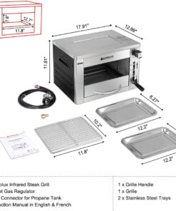 Propane Infrared Steak Grill. 1600℉ Fast Efficient Heating Outdoor Portable Gas Grill with Vertical Cooking. Stainless Steel Single Burner Propane Gas Grill. Perfect for Steak. Ribeyes. Picnic. BBQ