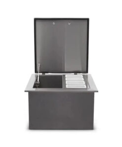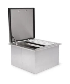 Provides a convenient solution for keeping beverages cold outdoors. Simply fill the Quivira 18×18 drop-in ice cooler with ice and drop in drinks. dressings. or condiments to maintain their coolness while enjoying your outdoor space. Additionally. it comes with a condiment tray. perfect for storing drink garnishes or hot dog fixings.
