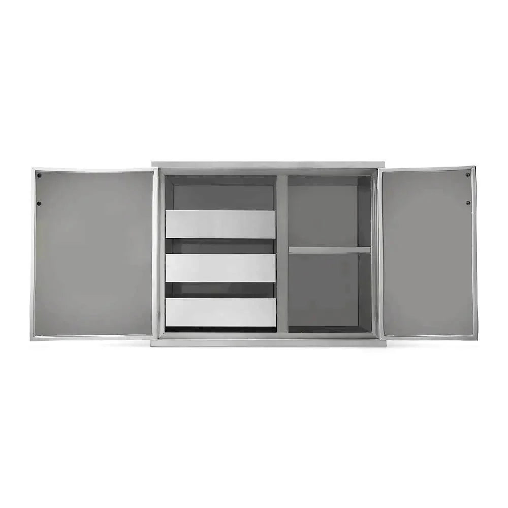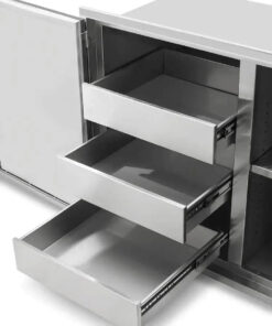 Constructed with 18 gauge. 304-stainless steel. this pantry is built to withstand outdoor elements and endure heavy use over time. The robust stainless steel construction ensures longevity and reliability. while the heavy-duty stainless steel handles facilitate easy access to the pantry’s contents.