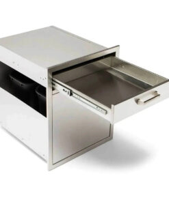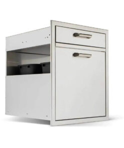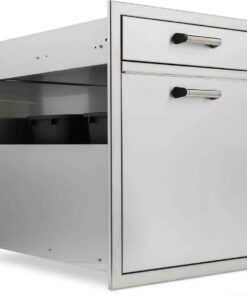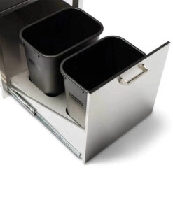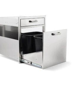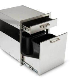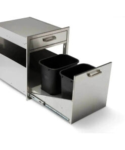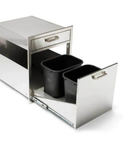 A convenient solution for outdoor cleanup & organization. Featuring a single 4 drawer atop a rollout with space for two trash bins (included). the Quivira Trash & Recycle Rollout ensures that receptacles are easily accessible during cooking & entertaining. facilitating seamless cleanup processes. Additionally. the drawer provides storage space for trash bags or other kitchen supplies. combining functionality with an attractive design.