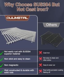 - 🔥【 Premium 304 Stainless Steel for Maximum Durability】Crafted from heavy-duty SUS304 food-grade stainless steel. these Weber Spirit 300 grates are non-magnetic. rust-resistant. and highly heat-resistant. making them ideal for long-term grilling. Unlike standard grates. these are built to resist chipping. warping. and corrosion