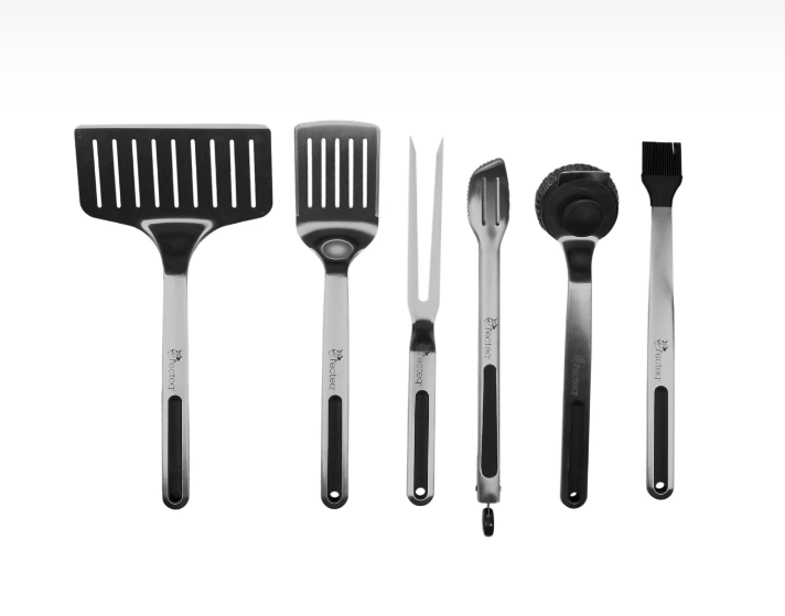 Grab your grilling arsenal! With this 6 piece BBQ Tool Set. you’ll score all our favorite essential tools to cook like a pro on your recteq wood pellet grill. Includes: Spatula. Large Spatula. Grate Brush. Fork. Tongs. & Basting Brush
