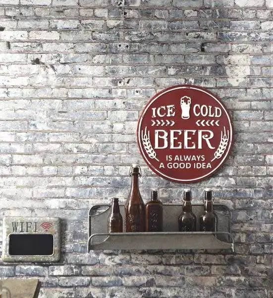 This Red and White Enameled Ice Cold Beer wall sign is ready to make it’s way to your home. In the event that you forget how tasty beer is. this sign will be sure to remind you!