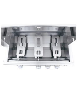 Other quality features include the rear infrared rotisserie burner with motor. spit rod with two 4 prong forks. heat zone separators. interior halogen lights. LED illuminated control knobs and a full width slide-out drip tray. Also included is a sure strike ignition system. which is the most reliable in the industry. Optional infrared searing burner upgrade is available! These grills are gorgeously sophisticated. yet very simple to operate.