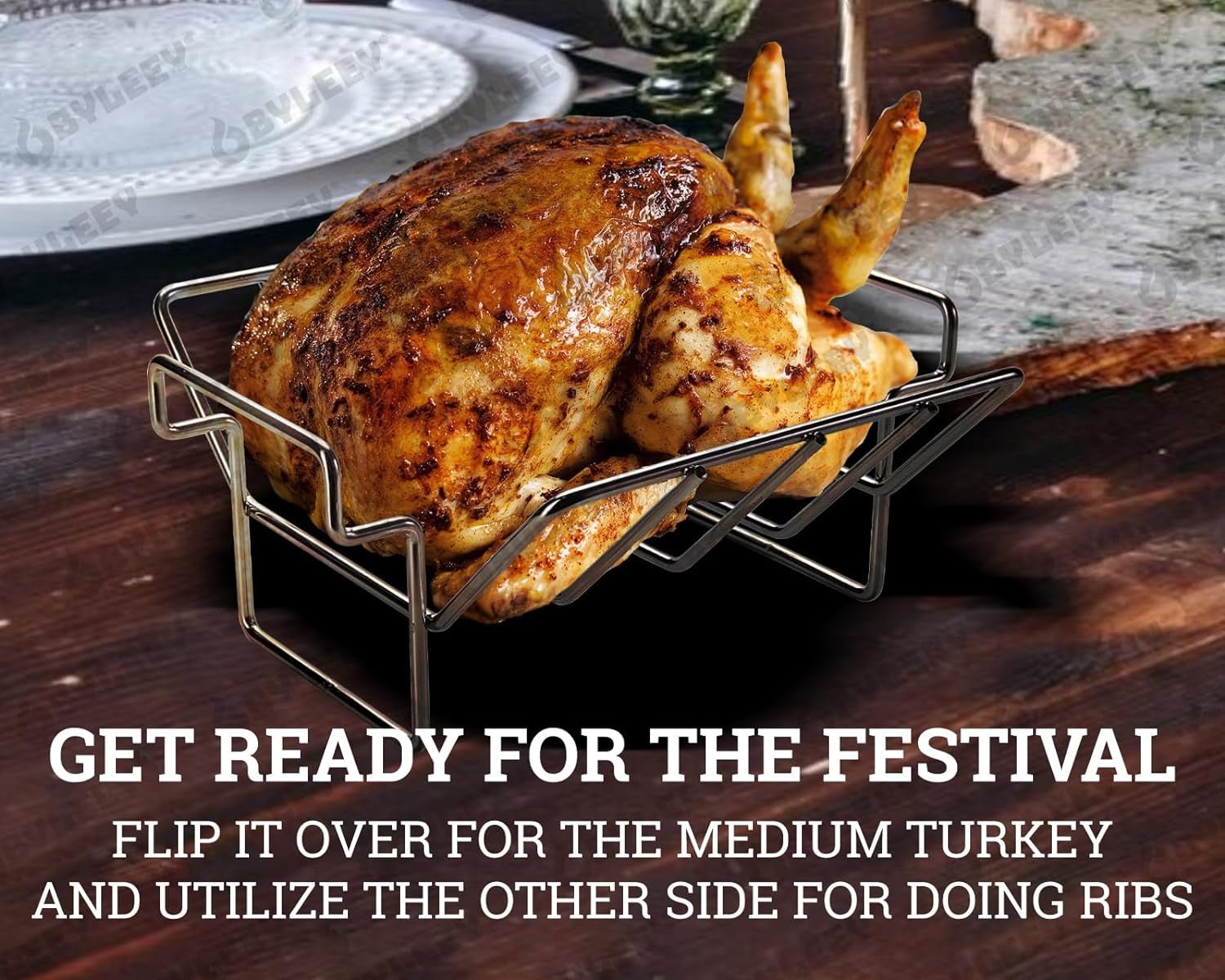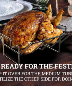 - 🥩 Roasting Rack for Oven – The dual-purpose rack means you can flip it over for roasting leg of lamb. forerib of beef. and more. Elevate the rack so that the heat circulates around the turkey better than the pan;