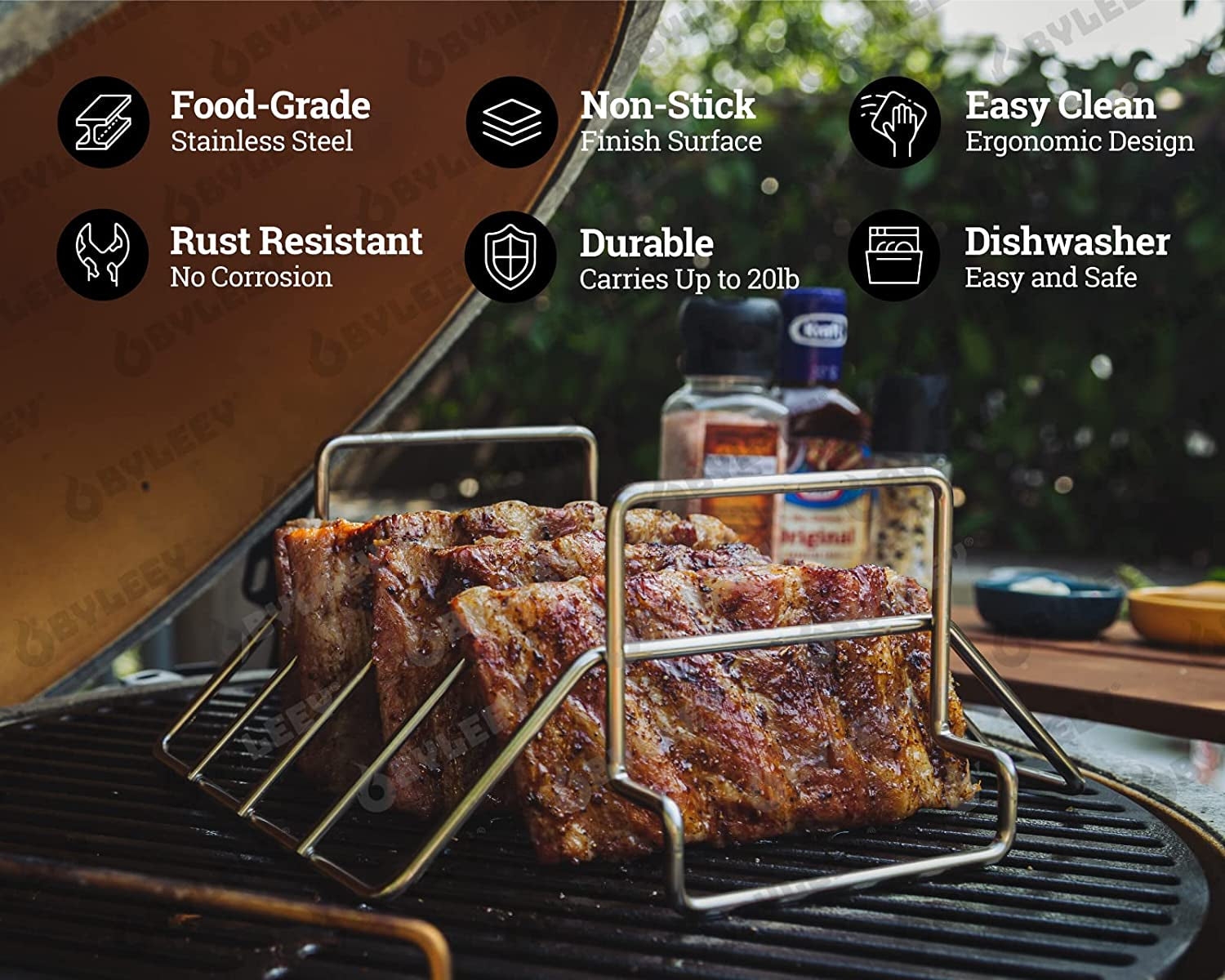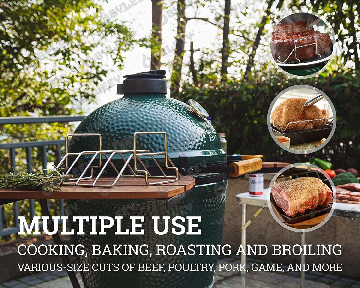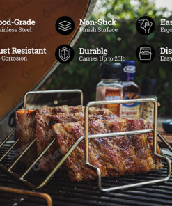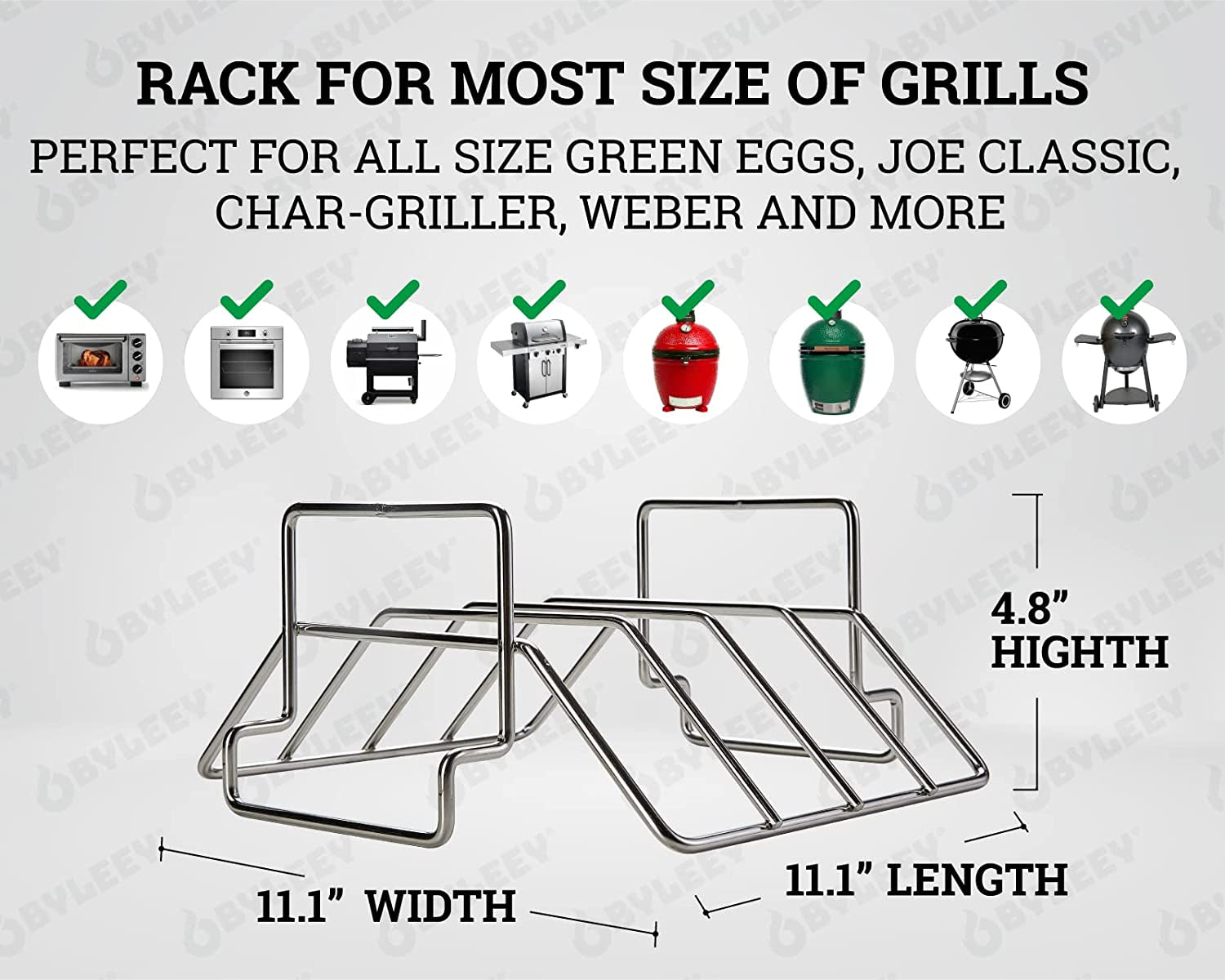 - 🥩 Rib Rack for Smoking – This rib & roaster rack accessory is a must-have when doing ribs. u can do four large racks of ribs on your green egg with no problem. a standing rack makes hot air can fully circulate;