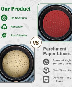 - GREAT SUBSTITUTE FOR PARCHMENT SHEETS: Avoid the expense of constantly purchasing single-use parchment paper that can easily burn. Our heat-resistant. reusable silicone air fryer basket liners offer a durable alternative that can be used repeatedly. Our perforated design ensures optimal air flow and even heat distribution during cooking. resulting in consistently crispy and evenly cooked food every time you cook. These liners for air fryer basket also fit 4 qt air fryers and larger