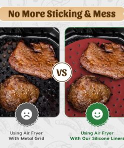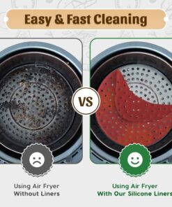 - KEEP YOUR AIR FRYER CLEAN: Our 9 Inch Round Air Fryer Silicone Liners are built to keep your air fryer in pristine condition and protect it against spills. drips. gunk and food getting stuck on the bottom of your air fryer basket. reducing your time having to clean up. They also function as an air fryer mat. ensuring a hassle-free cooking experience