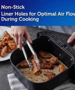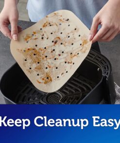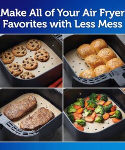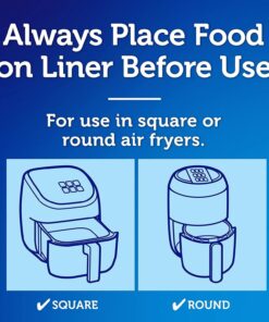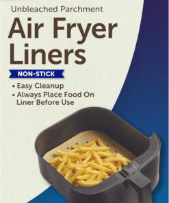 Reynolds Kitchens Air Fryer Liners are a convenient way to enjoy your favorite air fryer recipes without the mess. These convenient pre-cut air fryer liners measure 9 inches by 9 inches and are suitable for square and round air fryer baskets. Made with unbleached parchment paper. these liners are also non-stick which means your foods will easily lift out once they’re done cooking. Get every delicious bite of your favorite air fryer recipes like steak. chicken breasts. chicken wings. vegetables. or even dessert! Thanks to these easy-to-use disposable air fryer paper liners. you can enjoy your meals without the messy cleanup. Simply lift the liner out of the basket when you’re done. Please note: only place the air fryer liner in the air fryer after it has pre-heated. Only use liners when food is placed on the top of the liner and avoid direct contact of the liner with the heating element.