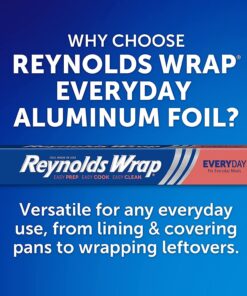 For over 70 years. home cooks like you have trusted Reynolds Wrap Aluminum Foil’s strength. versatility & durability all throughout their home. Reynolds Wrap can be used to protect food in all steps of the cooking process. & helps keep leftovers fresh when the cooking’s done. Use Reynolds aluminum foil to line baking pans & sheets for easy clean-up. or to wrap food while roasting or baking to seal in flavor and moisture. The Easy Tear Edge makes it easy to tear off the right size piece of baking foil to protect your leftovers from freezer burn. Wrap meats and veggies in a foil packet for an easy. flavorful meal in the oven or on the grill. or use an aluminum roll in a variety of kid-friendly crafts. With so much versatility. plus over 70 years of trusted quality. you can rely on Reynolds Wrap Aluminum Foil to make prepping. cooking & clean-up easier—& more fun!