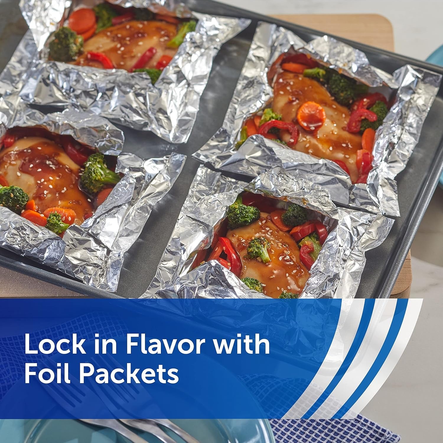 - BUILT-IN EASY TEAR EDGE: Get the right size piece of baking foil every time with the Easy Tear Edge. built right into the package for convenience