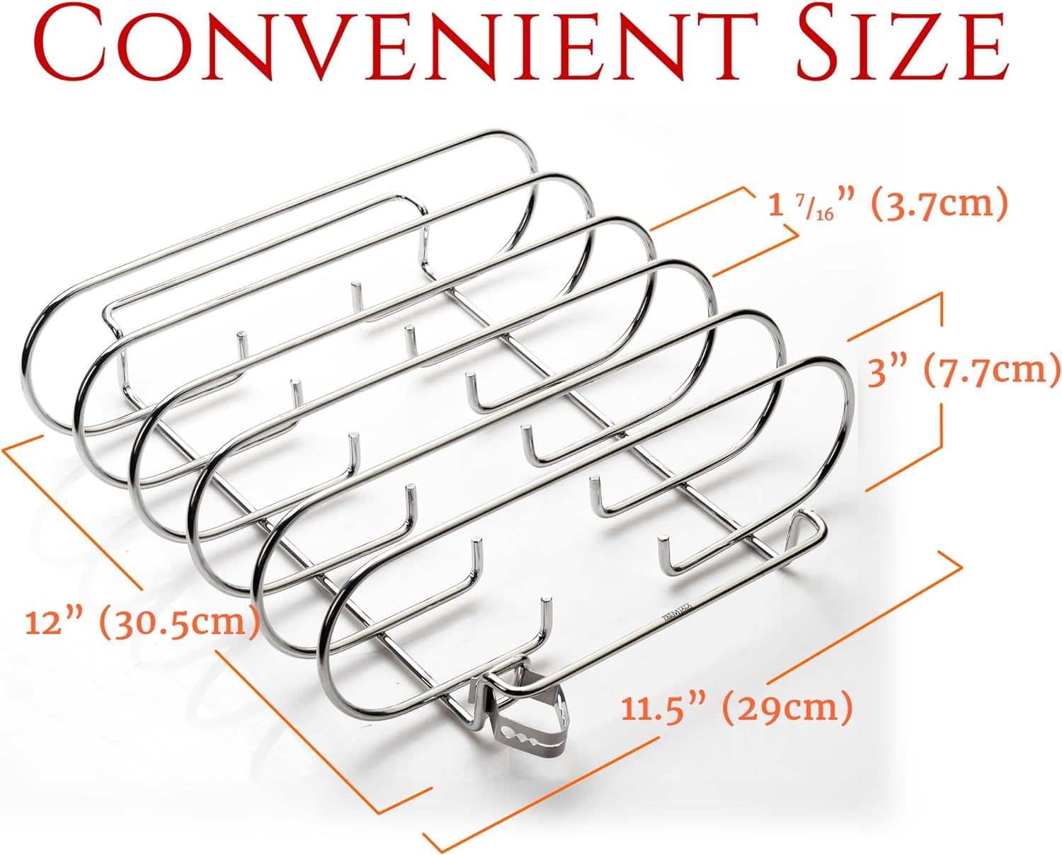 - 😮 SMOKE UP TO 6 RIBS AT ONCE! Avoid the embarrassment of an extra-hungry guest at dinner! Unlike competitors who limit you to just 4 or 5 racks of ribs at a time. the Premiala grilling Rib Rack lets you cook up to six racks at once! Never worry about another six hour cook just for one extra rack!
