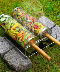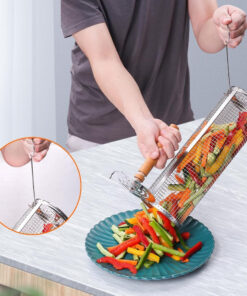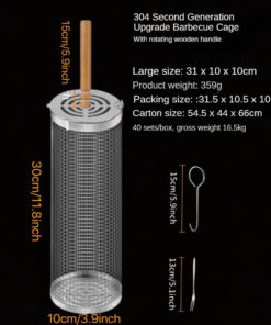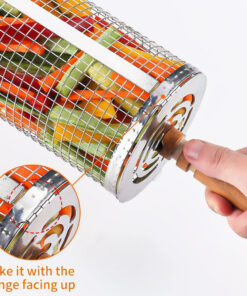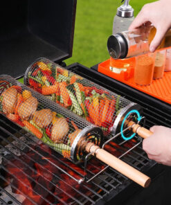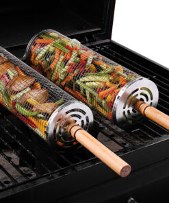 Rolling Barbecue Cage Large Stainless Steel Grilling Basket for Outdoor BBQ Mesh Net Tube Cooking Accessories for Vegetable Fish Camping Gift for Men Dad Husband Housewarming Perfect BBQ Tool