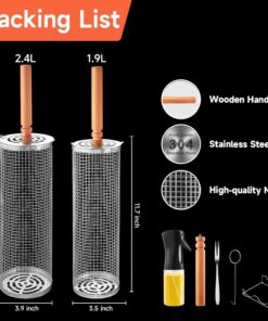 - 𝐖𝐇𝐀𝐓 𝐘𝐎𝐔 𝐆𝐄𝐓: 1 * 2.4L capacity Rolling Grilling Basket. 1 * 1.9L capacity Rolling Grilling Basket. 1 * Oil Spray. 2 * Barbecue Open Hook. 2 * Barbecue Forks. 1 * Barbecue Bracket. 2 * Wooden handle We stand behind our products with a 90-day warranty and a 30-day satisfaction guarantee. Our professional support team is always ready to assist with any questions or concerns. ensuring you have an exceptional experience with your new Grilling Basket!