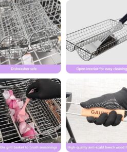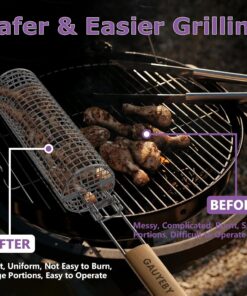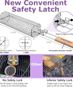 Rolling Grill Basket. Grill Baskets for Outdoor Grill. REMOVABLE HANDLE. Anti-Scorch Stainless Steel BBQ Net Tube for Meat. Shrimp. Vegetables. Grill Accessories. Gifts for Dad. Husband (Round)