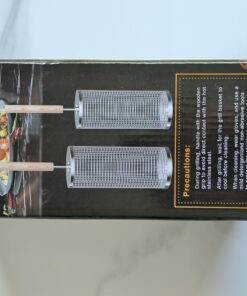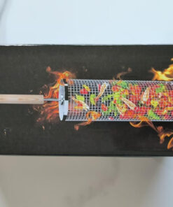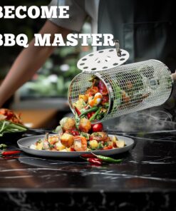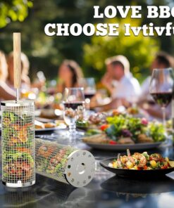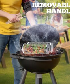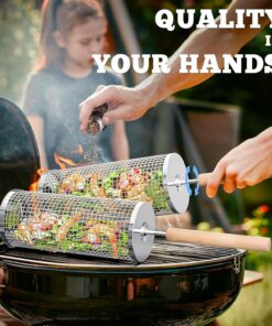 Rolling Grill Basket(2Pcs). Removable Wooden Handle. 304 Stainless Steel. Nesting Grilling Net. BBQ Accessories Tool for Vegetable Shrimp. Outdoor Cooking Camping. Birthday Gifts for Men Dad Husband