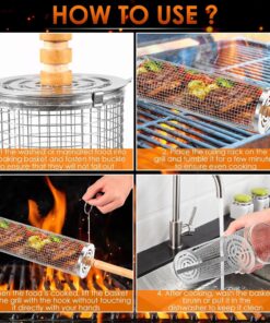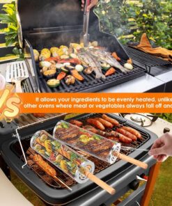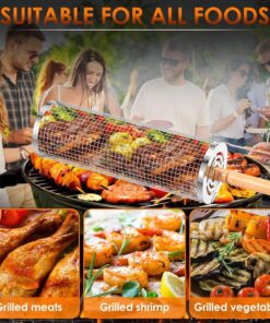 - [Easy to Clean] The rolling grilling basket is easy to clean. both available put it in the dishwasher or clean it by hands. Suitable for picnic. camping. or gathering. Ideal for grilling vegetables. meats. or fast food. etc.