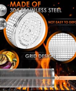- [Preferred Materials] The rolling grilling basket is crafted from quality 304 stainless steel. sturdy in construction. not easy to deform. Safe and reliable. no reaction with the food. preserving the flavour of the ingredients.