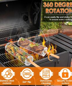- [Rolling Grilling Basket] The rolling grilling basket rotates 360°. you will amazed that the rolling grilling basket evenly grills your ingredients and not easy fall the meat or vegetables. It is suitable for gas. electric. and charcoal grilling.